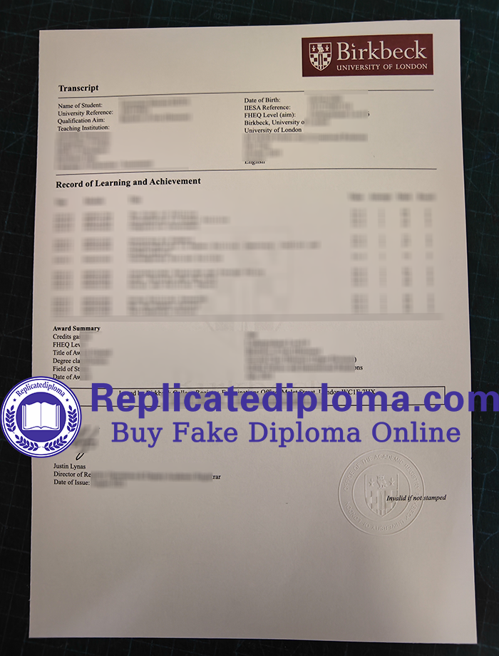 Buy fake Birkbeck, University of London transcript, buy fake Birkbeck, University of London diploma. A Birkbeck transcript from University of London is far more than a simple list of courses and grades; it’s a unique testament to how students achieve excellence through a precise balance between work and academics, a personalized reflection of the college’s nearly 200-year mission to “serve working learners.”